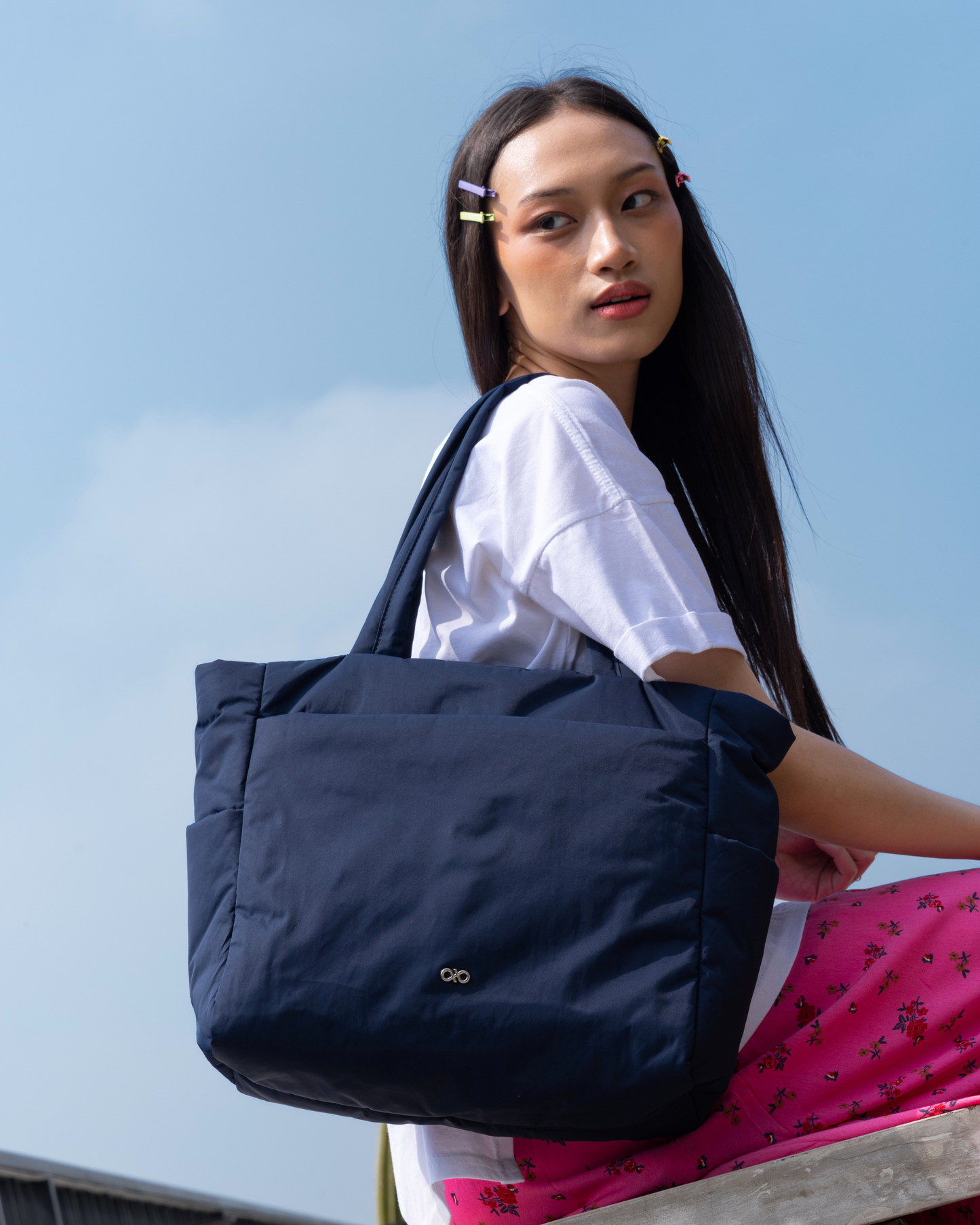The Posh Tote Bag is a versatile carryall crafted from quick-dry, water-resistant nylon. Its spacious interior and thoughtful compartments make it suitable for work, travel, or daily errands.