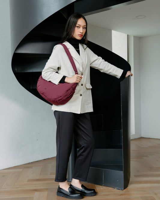 Sold outL COSY LUXE CRESCENT BAG WINE