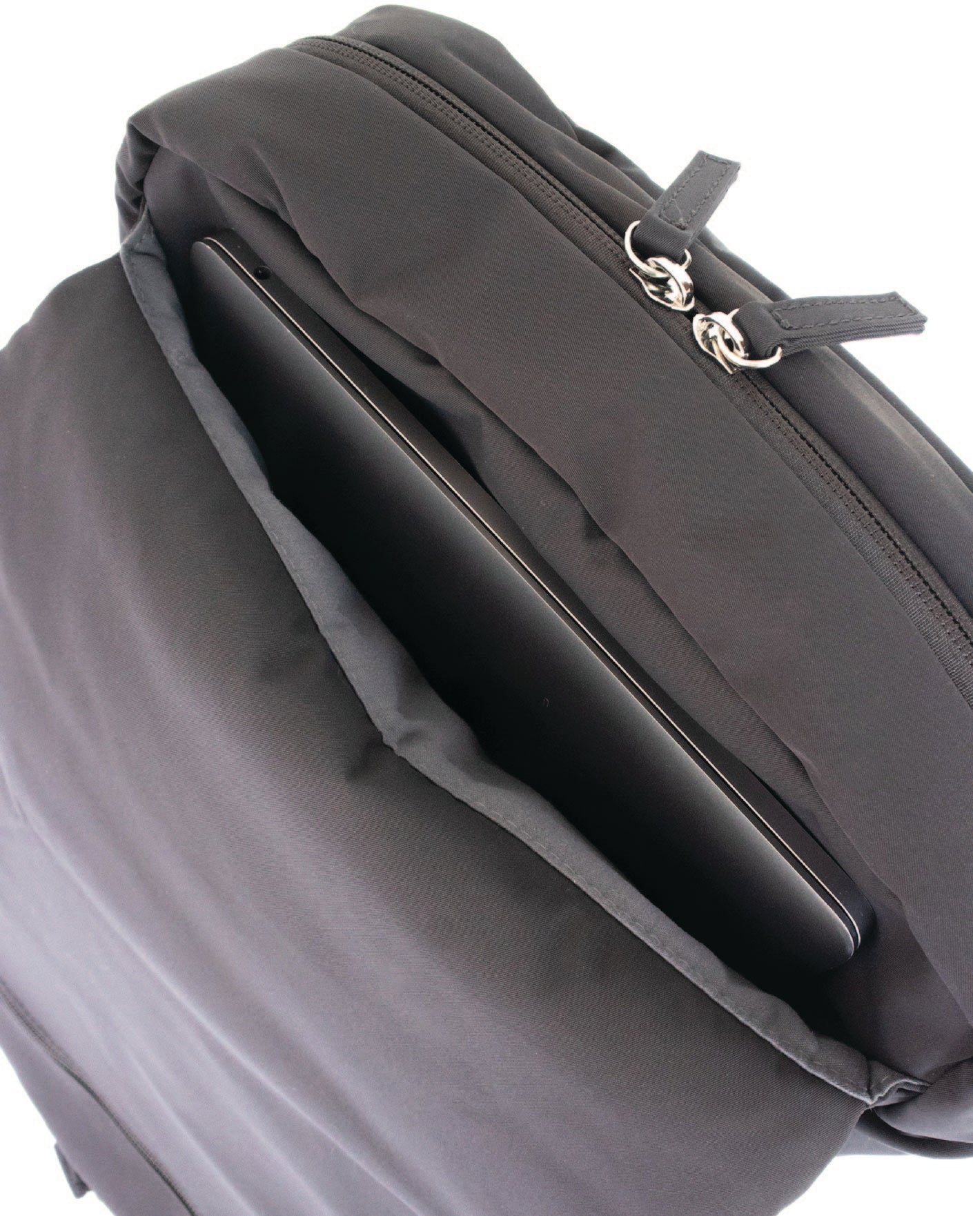 - Padded laptop slot for secure and sleek storage, fits up to a 15" Laptop